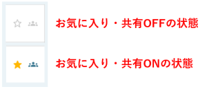 クリックで該当チャットのお気に入り(左側の☆マーク)登録/解除とプロジェクト内の他のユーザーにチャットを共有するかどうか(右側の人型のマーク)を切り替えることができます。