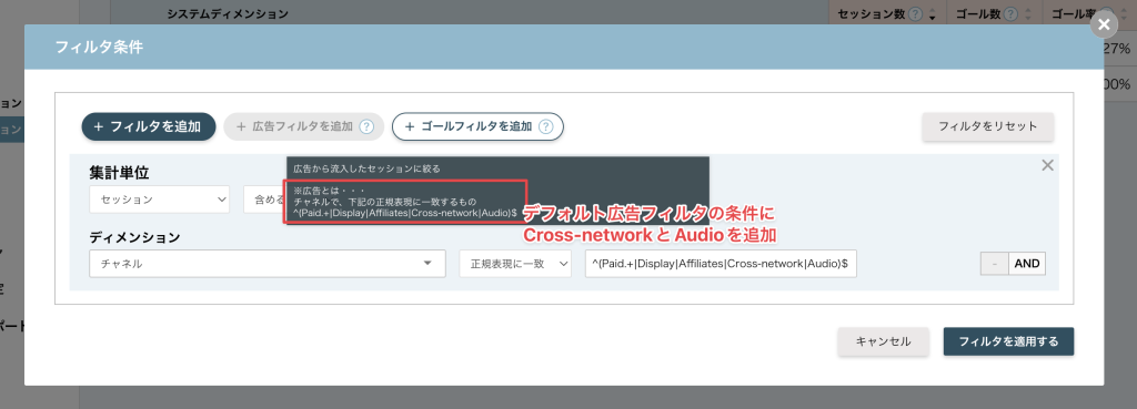広告フィルターの定義に含まれていなかった「Cross-network」と「Audio」の2チャネルを追加しました。